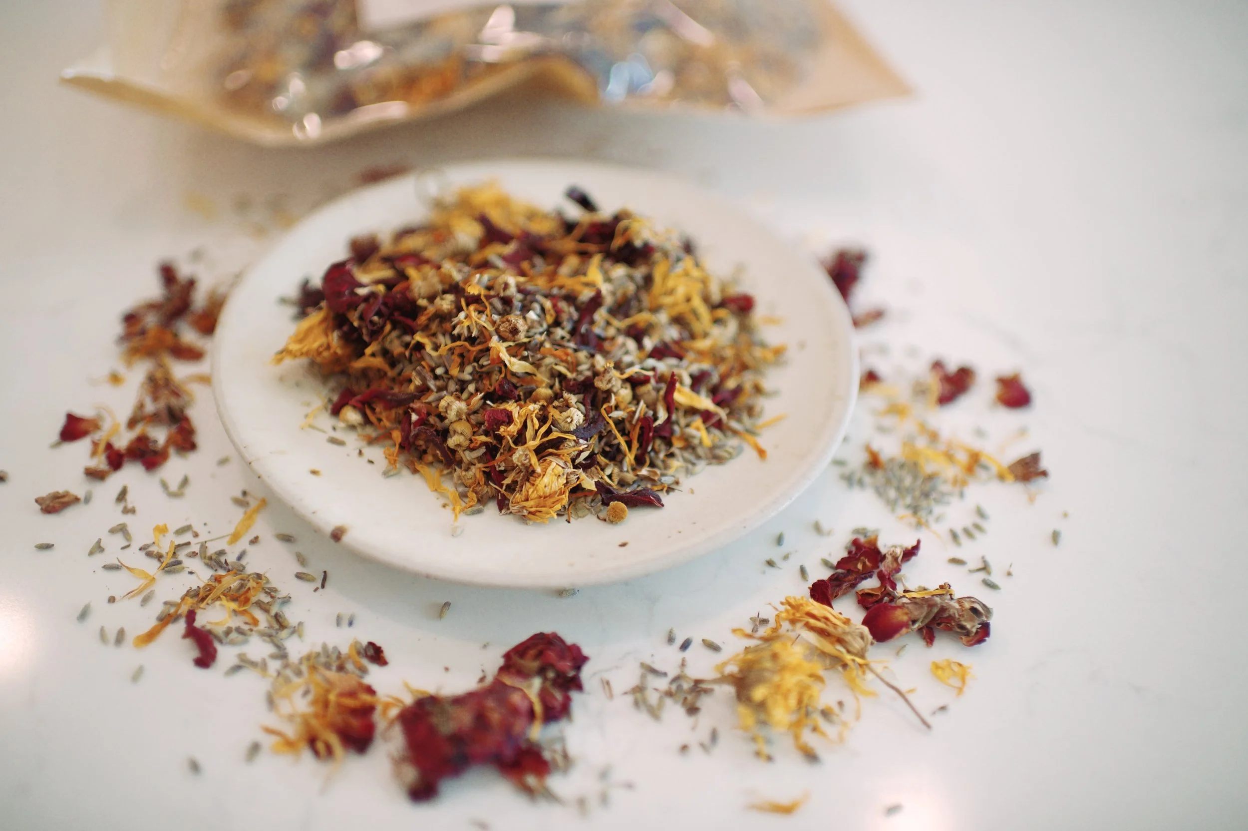 Our herbal bath blend combines dried herbs, flowers, and essential oils to create a soothing, therapeutic experience—promoting relaxation, skin nourishment, muscle relief, and postpartum healing through natural, time-tested ingredients.